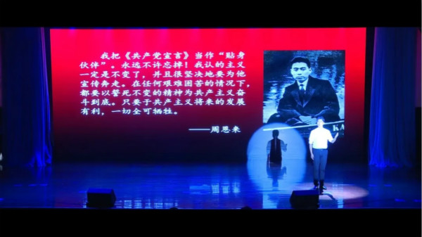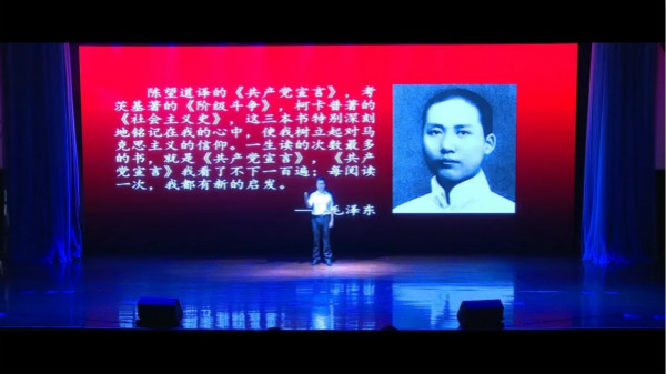 革命先烈的思想深度和政治高度是我難以望其項背的,我的朗誦詞提到了毛主席經常閱讀的三本書:《共產黨宣言》、《階級斗爭》、《社會主義史》,我想通過閱讀這些書籍,能幫助我們離偉人更近,這場演出激勵著我們這些青年同志不斷探索偉人的思想,從而對我們的建國根基進行更深入的思考。感謝部團委的組織和付出,感謝一起演出的小伙伴們的陪伴和鼓勵,期待著與大家在生活中的不斷偶遇!