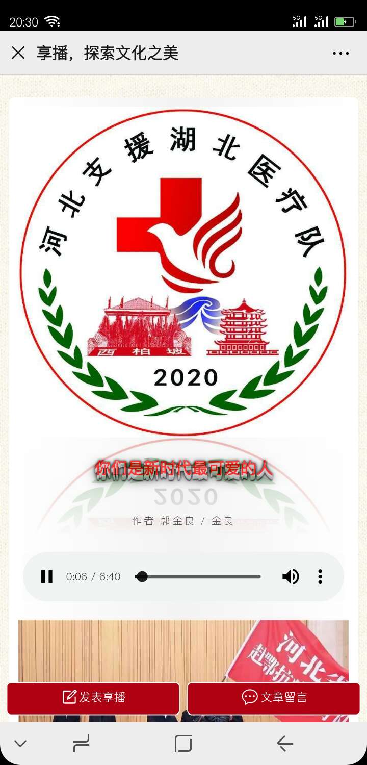 (四)網上爭創激發黨員大擔當。先后在網上發布《河北省醫院黨的建設工作指導委員會關于開展“我是黨員我帶頭,防控疫情當先鋒”活動的通知》《中共河北省衛生健康委黨組關于進一步強化責任擔當堅決打贏疫情防控阻擊戰的通知》《中共河北省衛生健康委黨組關于在肺炎疫情防控工作中充分發揮基層黨組織戰斗堡壘作用和黨員先鋒模范作用的通知》《河北省衛生健康委援鄂抗疫倡議書》等,對黨員干部進行“全覆蓋”的動員,積極營造網上號召、網下爭創濃厚氛圍。充分利用官方微博、微信群、官網“媒體聚焦”“致敬醫者”等欄目等平臺,及時宣傳全國衛生健康系統疫情防控先進集體和先進個人、“燕趙楷?!r代新人”等一線抗疫工作者的感人事跡,組織創作《溫柔的堅強》《為愛出征》《送祝?!贰都佑托倪B心》等網絡歌曲,制作一線戰疫微視頻,開通“英雄出征”“戰場連線”“英雄凱旋”等網上視頻直播節目,組織網上《戰“疫”家書》展播,講一線好故事,傳遞戰疫正能量,不斷激勵廣大黨員干部沖鋒一線、奉獻一線、建功一線。