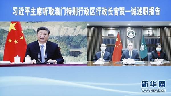 新華社北京1月27日電 國家主席習近平27日下午在北京以視頻連線方式聽取了澳門特別行政區行政長官賀一誠2020年度的述職報告。賀一誠匯報了澳門特別行政區政府過去一年工作和當前形勢。