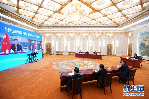 1月27日,國家主席習近平在北京以視頻連線方式聽取了澳門特別行政區行政長官賀一誠2020年度的述職報告。新華社記者 劉彬 攝