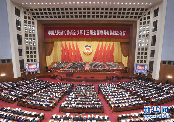 大會首先審議通過了政協第十三屆全國委員會第四次會議議程。