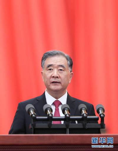 汪洋代表政協第十三屆全國委員會常務委員會,向大會報告工作。