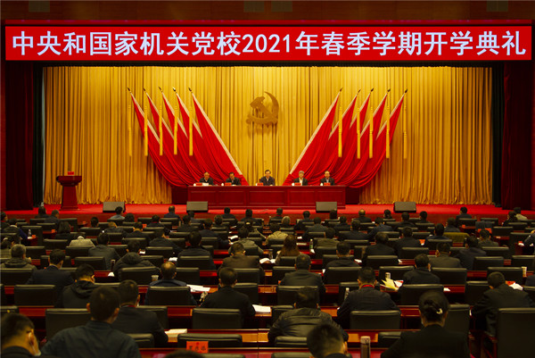 中央黨校(國家行政學院)副校(院)長謝春濤,中央和國家機關工委委員、辦公廳主任陳東崗,中央黨校(國家行政學院)教務部有關負責同志,中央和國家機關黨校校委會成員出席。春季學期司局級干部進修班、處級干部進修班、青年干部培訓班、40歲以下青年干部專題培訓班全體學員,中央和國家機關黨校干部職工等共220余人參加開學典禮。
