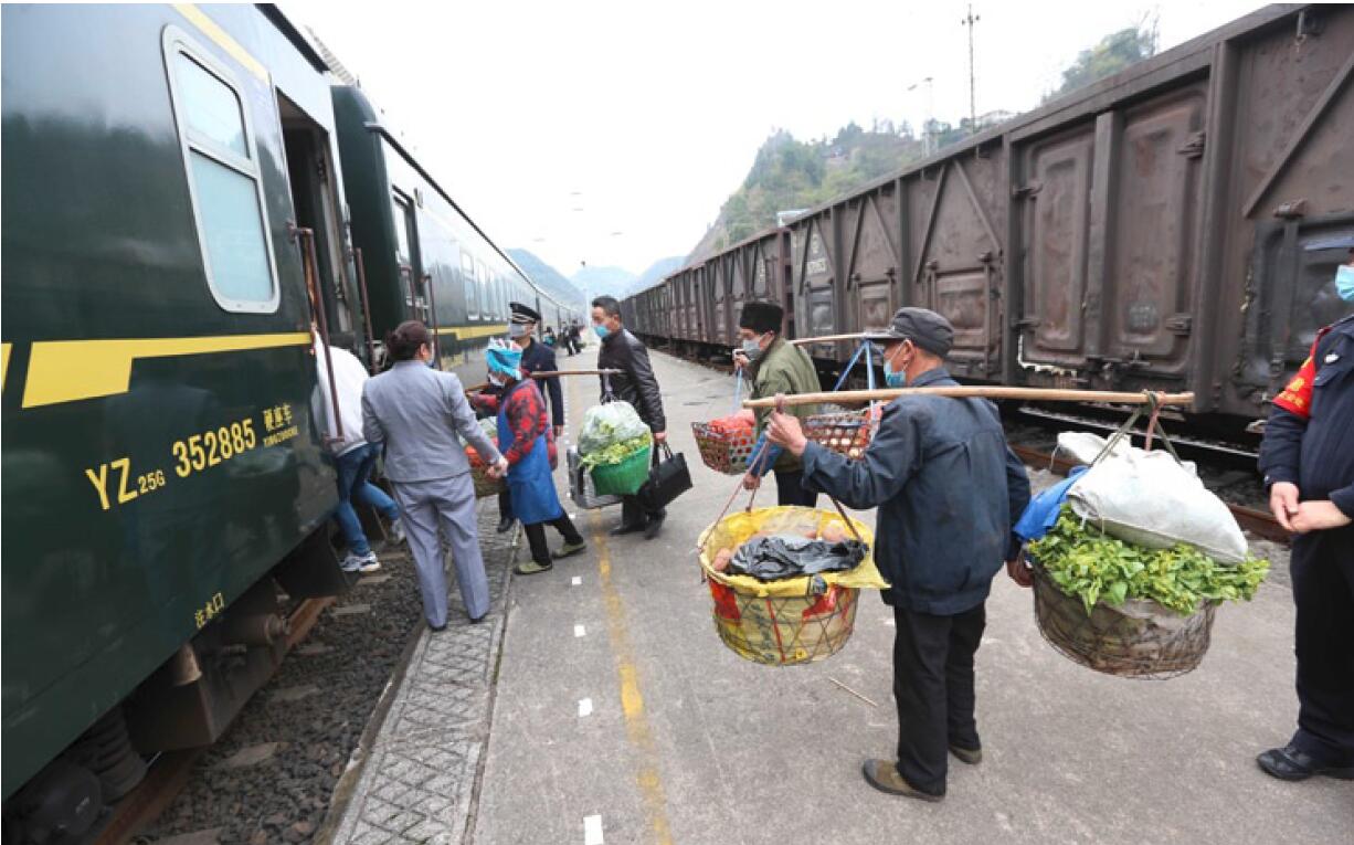 漢中至陽平關8361/8362次列車單程運行117公里,沿途溝壑密布,開行范圍覆蓋500多個行政村76萬以上人口。為解決沿線村民出行難題,本是通勤車的列車堅持14年向旅客開放,但區間最低1元、全程7.5元的票價未曾上漲。鐵路精準對接村民需求,精心打造“列車集貿市場”,村民的土雞、臘肉、魔芋等農產品在列車上就能交易。