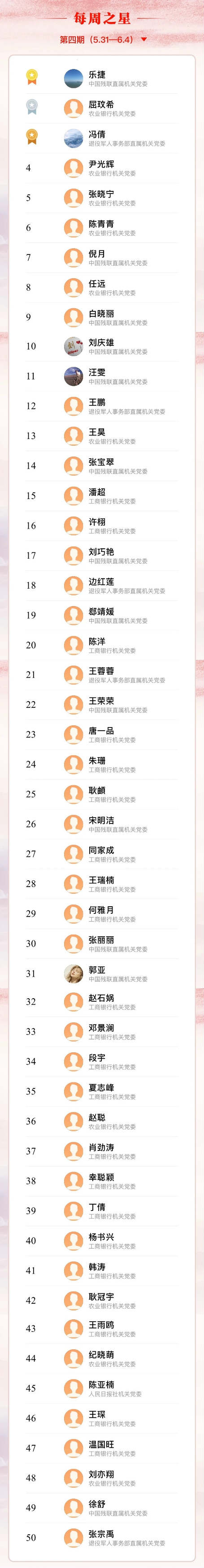 “黨在我心中”中央和國家機關青年黨史知識大賽產生了新一期每周之星50名。
