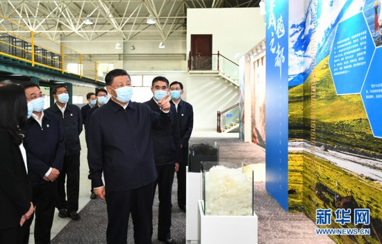 6月7日至9日,中共中央總書記、國家主席、中央軍委主席習近平在青??疾?。這是7日下午,習近平在青海圣源地毯集團有限公司生產車間考察。新華社記者 謝環馳 攝