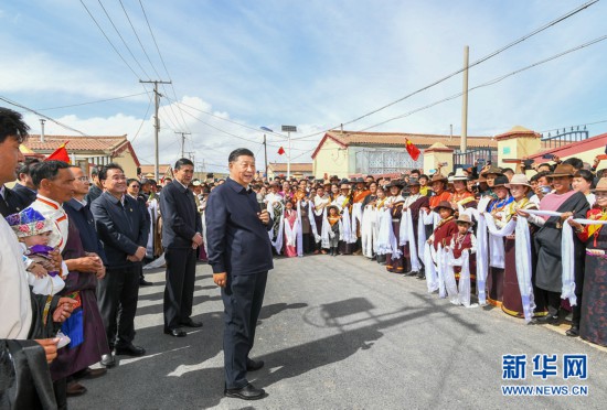 離開索南才讓家,村民們看到總書記來了,熱情地涌到路邊,歡呼著向總書記問好。習近平動情地說,看到鄉親們過上幸福生活,我感到很欣慰。我們要繼續奮斗,到新中國成立一百周年時中華民族一定能夠更加堅強地屹立于世界民族之林。全面建設社會主義現代化國家,一個民族也不能少。在中華民族大家庭中,大家只有像石榴籽一樣緊緊抱在一起,手足相親、守望相助,才能實現民族復興的偉大夢想,民族團結進步之花才能長盛不衰。習近平祝福大家“扎西德勒”。
