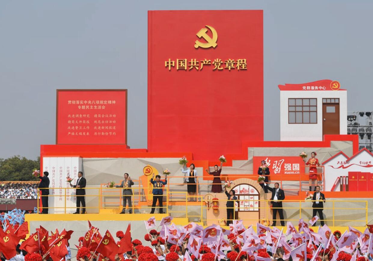 >> 慶祝中華人民共和國成立70周年大會群眾游行中的“從嚴治黨”方陣。