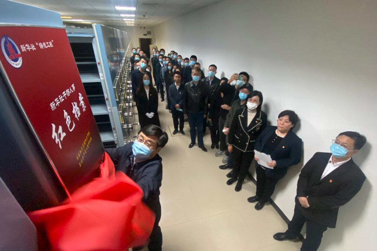 >> 4月12日,新華社人事局黨委開展“創建紅色檔案,弘揚社史社風”主題黨日活動并為“新 華社干部人事紅色檔案”專柜揭牌。