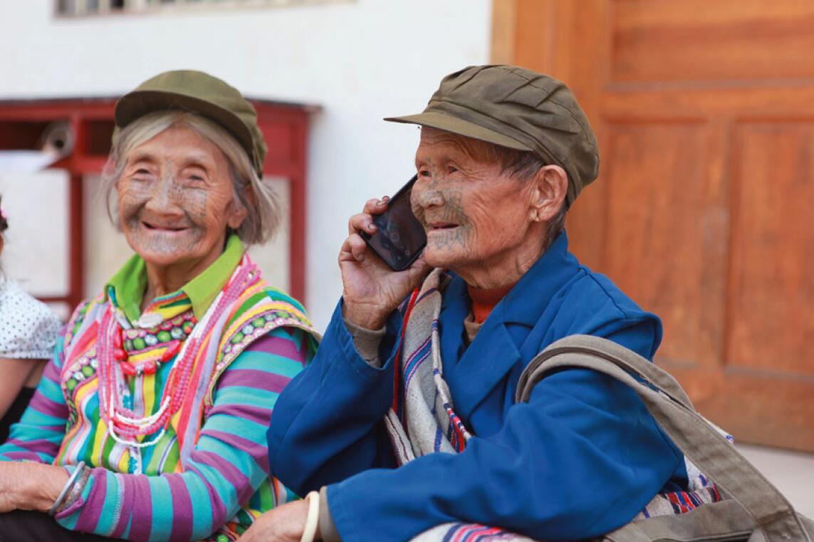 >> 獨龍江鄉地處中緬邊境,是中國最后一個通公路和開通移動電話的少數民族聚居區。 在網絡提速降費工作的推動下,獨龍江鄉成為云南省首個開通4G網絡的鄉鎮。圖為獨龍族居民使用智能手機。