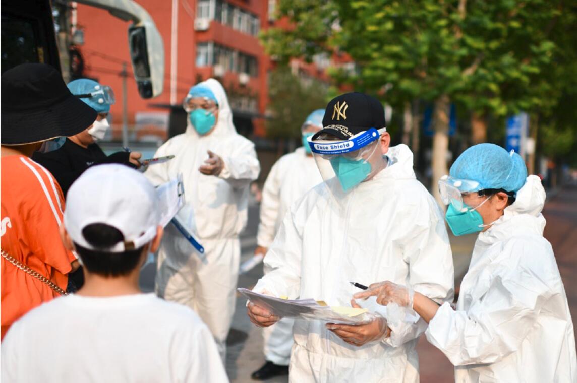 >> 新發地批發市場聚集性疫情發生后,北京市直機關下沉干部組織居民進行核酸檢測。