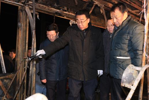 >> 2016年1月5日,寧夏回族自治區銀川市發生公交車縱火案,孫玉友 (中) 赴現場調查。