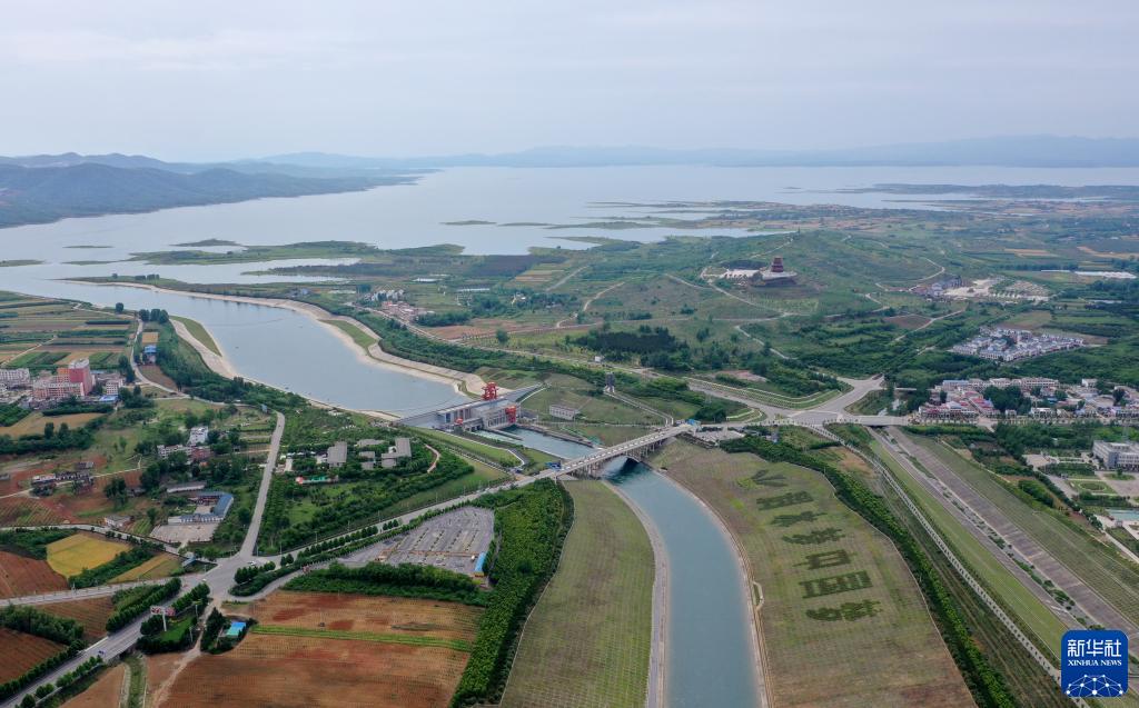 這是在河南省南陽市淅川縣拍攝的南水北調中線工程陶岔渠首(5月20日攝,無人機照片)。新華社記者 李嘉南 攝