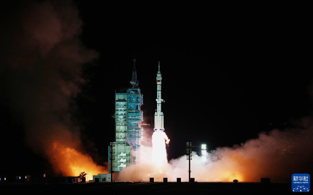 10月16日,搭載神舟十三號載人飛船的長征二號F遙十三運載火箭,在酒泉衛星發射中心點火起飛。新華社記者 李剛 攝