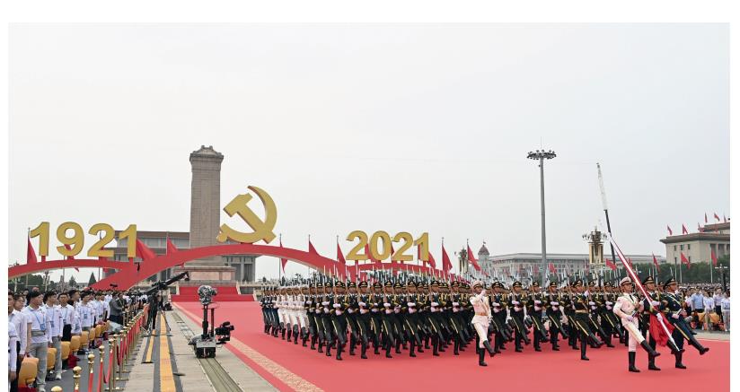 >> 7月1日上午,慶祝中國共產黨成立100周年大會在北京天安門廣場隆重舉行。這是國旗護衛隊準備升旗。