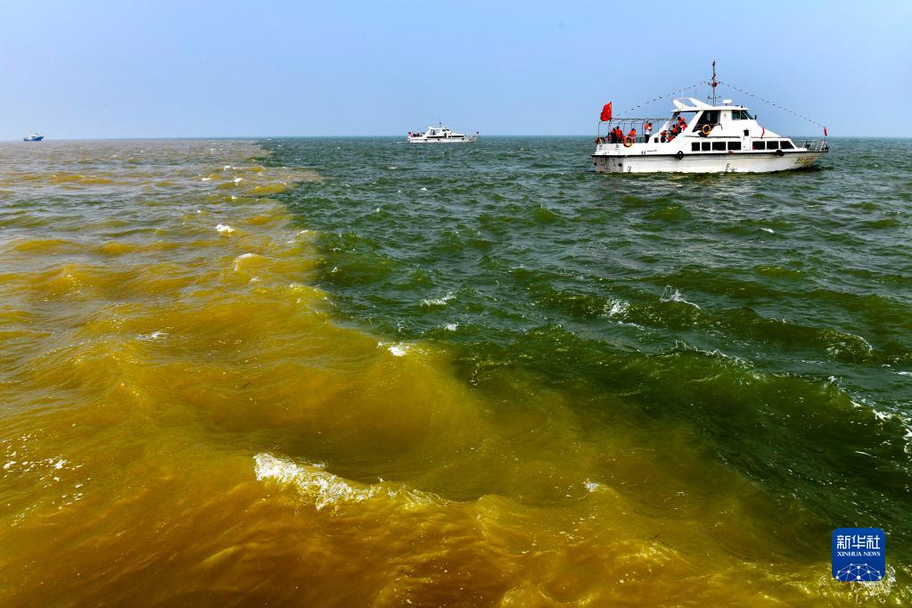 在山東省東營市黃河入???,黃河匯入渤海,形成獨特景觀(5月13日攝)。新華社記者 郭緒雷攝