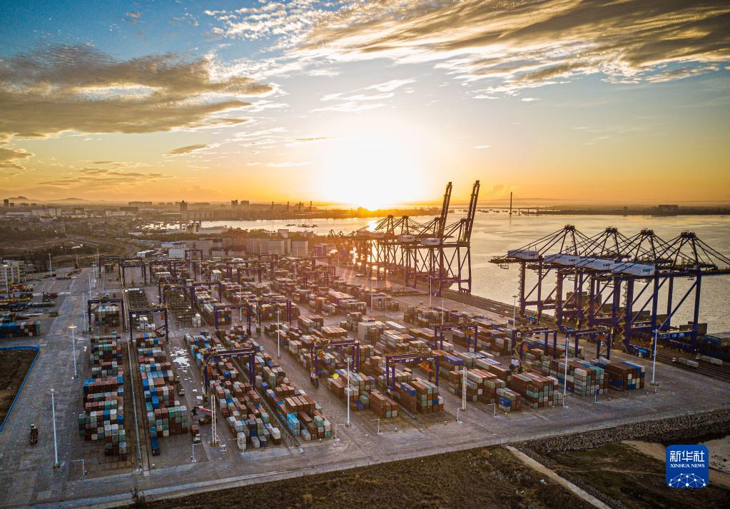 這是5月26日在海南洋浦經濟開發區拍攝的洋浦國際集裝箱碼頭(無人機照片)。新華社記者 蒲曉旭 攝