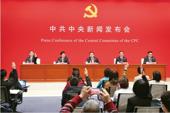 2021年11月12日,中共中央在北京舉行新聞發布會,介紹黨的十九屆六中全會精神,并答記者問。中新社記者 易海菲/攝