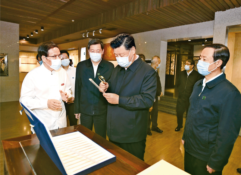 2020年9月16日至18日,中共中央總書記、國家主席、中央軍委主席習近平在湖南考察。這是17日下午,習近平在湖南大學岳麓書院考察調研,了解人才培養、文化傳承等情況。 新華社記者 謝環馳/攝