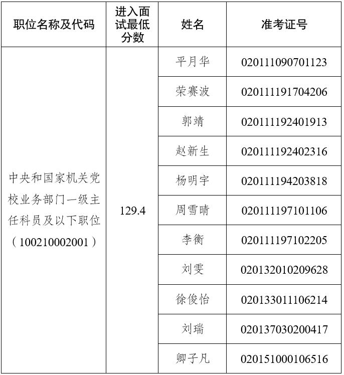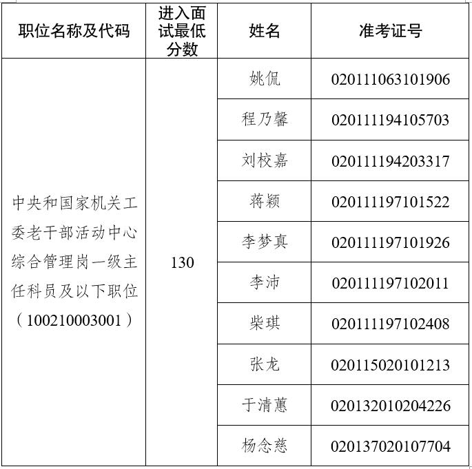 2.中央和國家機關工委招錄公務員面試人員情況表