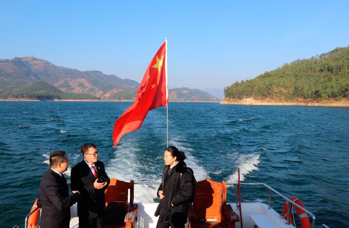 >> 萬峰湖流域生態環境受損公益訴訟案是最高人民檢察院直接辦理的第一起公益訴訟案,以極少的司法資源投入,與行政機關共同努力,撬動滇、黔、桂三省區數百萬人參與流域治理,呈現出令人矚目的辦案效果,如今的萬峰湖山清水秀、風景如畫。圖為貴州省黔西南州檢察院到治理后的萬峰湖開展督查。