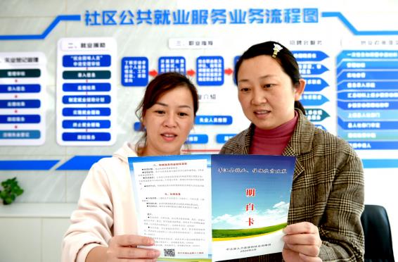 >> 在湖南省最大易地扶貧搬遷集中安置項目——岳陽市平江縣洪家塅安居小區,社區工作人員為群眾解讀就業扶貧的惠民政策。