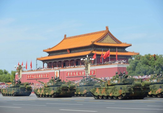 99A型主戰坦克在中國人民抗日戰爭暨世界反法西斯戰爭勝利70周年紀念大會上接受檢閱。