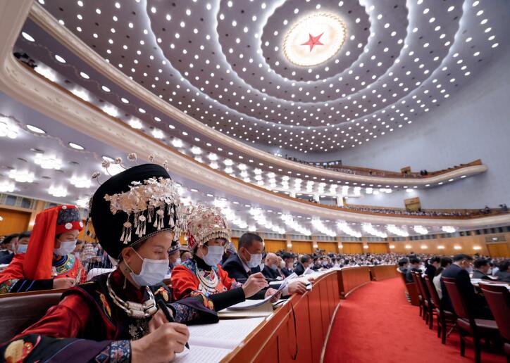 >> 2022年3月5日,第十三屆全國人民代表大會第五次會議在北京人民大會堂開幕。這是代表們在認真聽會。
