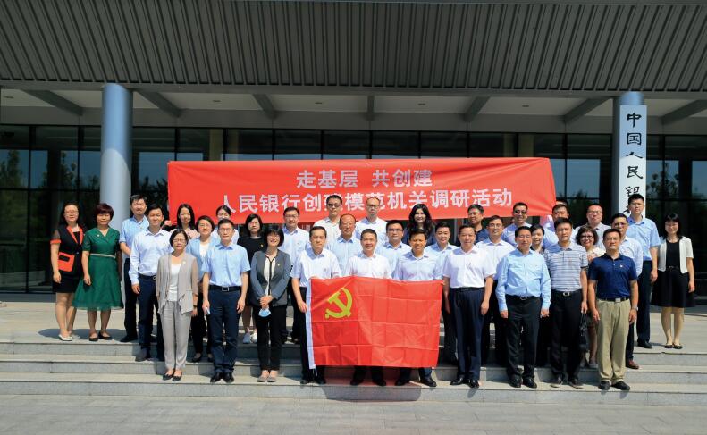 >> 2020年8月28日,作者(前排左五)和總行機關創建模范機關工作領導小組成員單位到營業管理部開展調研活動。