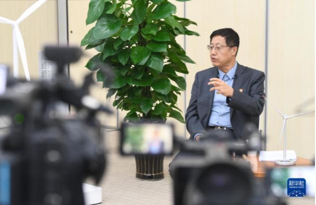 武鋼在金風科技新疆總部公司接受媒體采訪(2022年10月3日攝)。新華社記者 王菲 攝