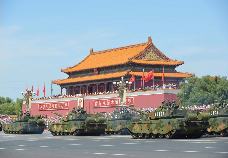 >> 99A型主戰坦克在中國人民抗日戰爭暨世界反法西斯戰爭勝利70周年紀念大會上接受檢閱。