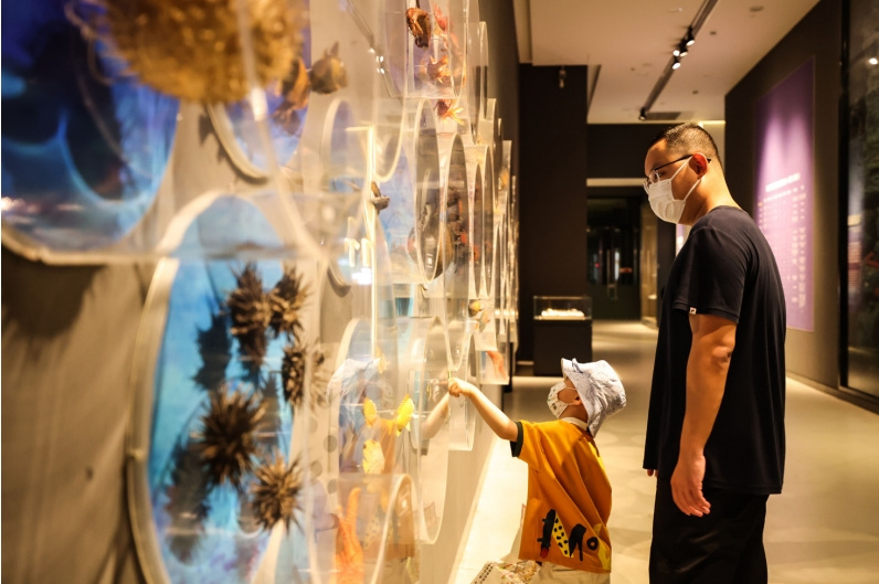 >> 4月24日,游客在海南省博物館里參觀“南溟奇甸”南海海洋文明陳列展。