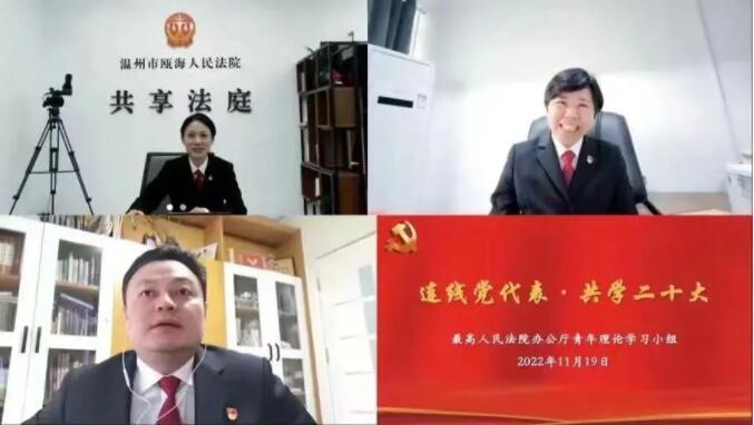 近日,最高人民法院辦公廳舉辦了以“連線黨代表·共學二十大”為主題的“法院青年說”沙龍活動。來自基層法院的黨的二十大代表王群英、周淑琴和崔贛與辦公廳青年理論學習小組成員、部分處室同志進行了線上交流。