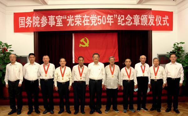 2021年6月,國務院參事室黨組成員為老黨員頒發“光榮在黨50年”紀念章。