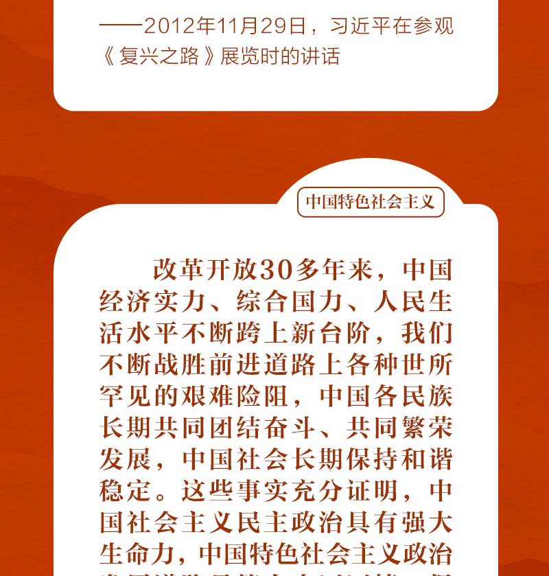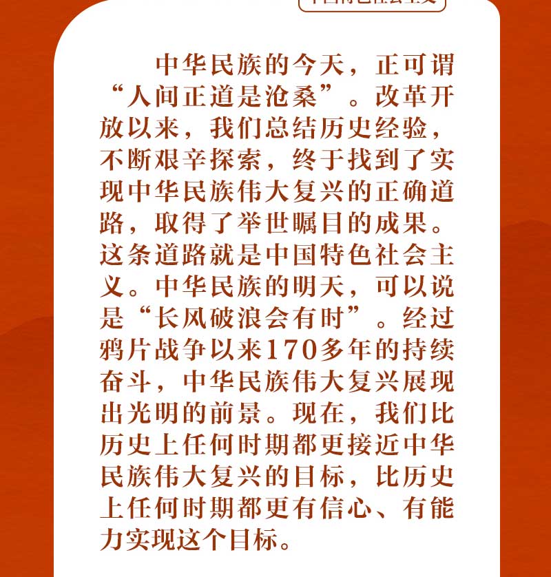 歷史和現實都告訴我們,只有社會主義才能救中國,只有中國特色社會主義才能發展中國,只有堅持和發展中國特色社會主義才能實現中華民族偉大復興。這是歷史的結論,也是人民的選擇。我們一起從習近平總書記的重要論述中體會其深刻含義。