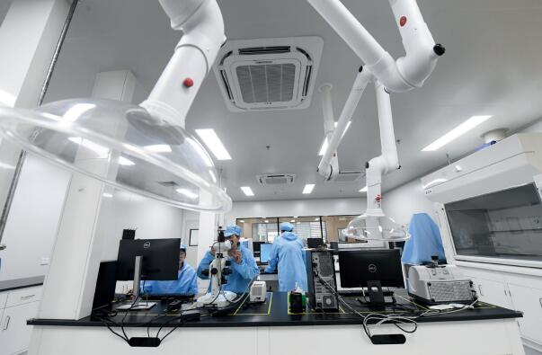 2022年9月22日,在位于浙江省湖州市安吉縣的浙江潔美電子信息材料研究院,科研人員對搭載芯片的載帶做成分分析。近年來,安吉縣以綠色發展為導向,推動企業向科技型、創新型發展。目前,安吉縣共有國家高新技術企業263家,省級科技型中小企業950家,全縣已有省級高新技術企業研發中心112家,科技創新成為驅動產業升級的強大引擎。