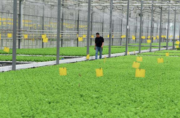 2022年5月12日,工作人員在合肥市肥西縣花崗鎮現代農業示范區一蔬菜種植基地內查看蔬菜長勢。近年來,安徽省合肥市在推進鄉村振興過程中,著力打造各具特色的現代農業產業園,發展智慧農業,提高農業現代化水平,帶動鄉村產業發展和農民增收。