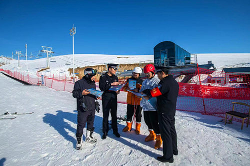 “為群眾排憂解難,就是我們最重要的工作!”警務區聯合實戰黨小組設立了“黨員先鋒崗”,在旅游咨詢、查找失物、緊急救助等方面為游客和山區牧民提供最佳服務,當好平安景區的堅實“守護者”。1月5日,當地突降大雪,部分路段道路交通受阻,4輛私家車被困風雪中。接到群眾求助后,警務區黨小組的數十名成員立即組成應急救援小分隊開展救援。經過2個多小時的救援,所有被困人員和車輛全部脫險,并由民警護送至安全路段。