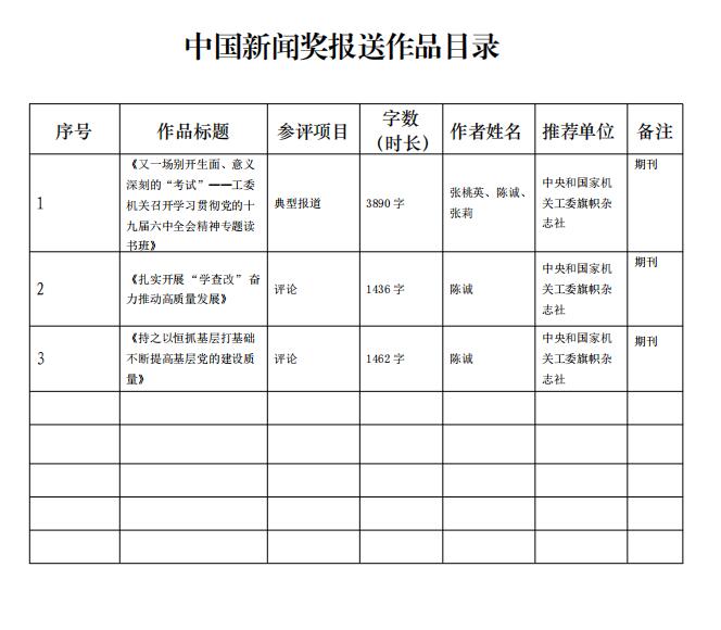 根據中國期刊協會《關于開展第33屆中國新聞獎新聞期刊作品初評工作的通知》要求,擬推薦3件作品參評第33屆中國新聞獎新聞期刊作品?,F將推薦作品進行公示。