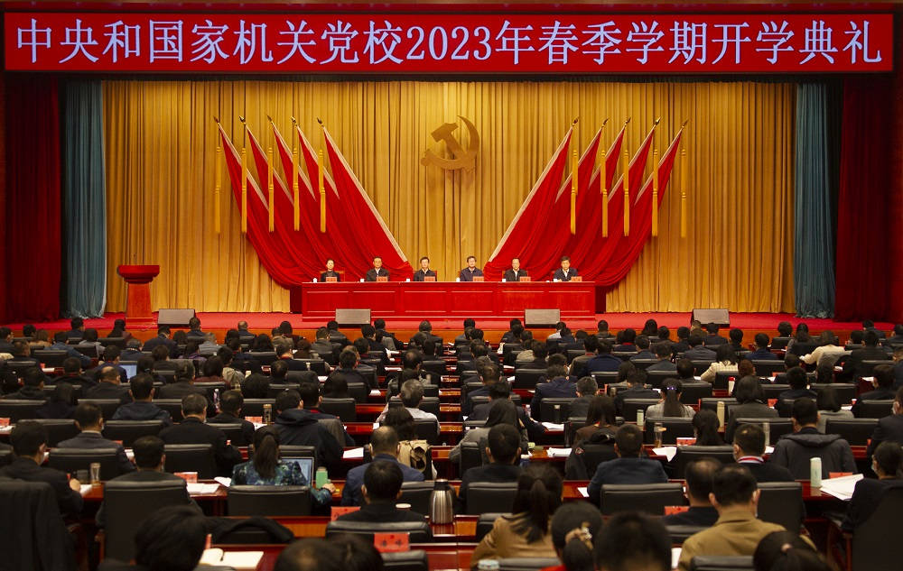 中央黨校(國家行政學院)副校(院)長龔維斌,中央和國家機關工委委員、組織部部長、中央和國家機關干部教育辦公室主任顧祥勝,中央和國家機關工委委員、辦公廳主任陳東崗,中央組織部干部教育局副局長、一級巡視員張洪濤等有關領導出席開學典禮,中央和國家機關黨校(中央黨校中央和國家機關分校)分管日常工作的副校長馮源主持開學典禮。中央和國家機關黨校(中央黨校中央和國家機關分校)2023年春季學期司局級干部進修班、處級干部進修班、青年干部培訓班、青年干部學習貫徹黨的二十大精神專題培訓班全體學員以及干部職工參加開學典禮。