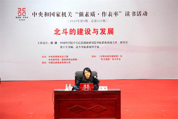 在第28個“世界讀書日”和第8個“中國航天日”來臨之際,4月22日,中央和國家機關“強素質·作表率”讀書活動2023年第3期在京舉辦。中國科學院空天信息創新研究院導航系統部副主任、研究員、博士生導師,北斗導航系統科學家徐穎以《北斗的建設與發展》為題作主題講座。中央和國家機關各部門黨員干部及家屬共700余人參加了活動,現場氣氛熱烈。