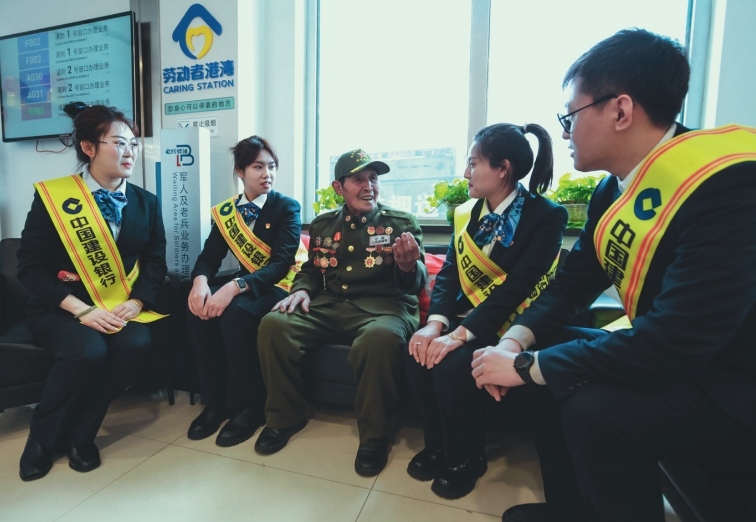 >> 中國建設銀行遼寧省撫順分行學雷鋒志愿者聆聽抗美援朝老兵孫德山講述革命歷史,激發干事創業熱情。