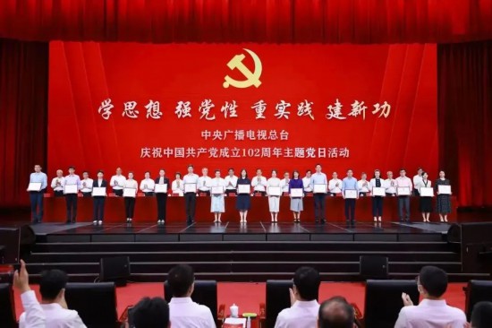活動中,老黨員、播音員黎江領誓,120名新黨員入黨宣誓,老黨員重溫入黨誓詞。與會領導為總臺獲得“光榮在黨50年”紀念章老黨員代表頒授紀念章,為總臺“四好”優秀黨員、“四強”黨支部、“年度黨建品牌”代表頒獎?!肮鈽s在黨50年”紀念章獲得者代表,總臺“四好”優秀黨員、“四強”黨支部、“年度黨建品牌”代表,新發展黨員代表分別作了發言。