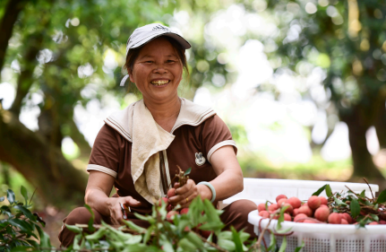 >> 6月12日,廣東省茂名市根子鎮柏橋村村民在古荔枝貢園里分揀荔枝。