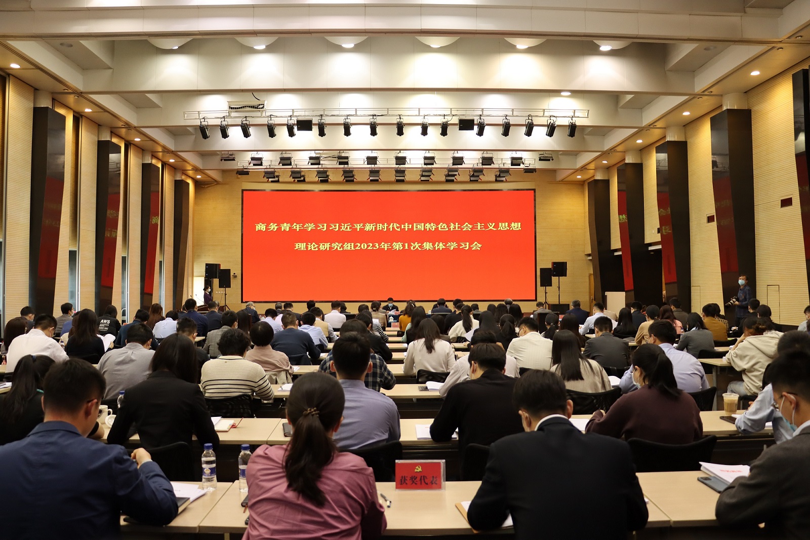 商務青年學習習近平新時代中國特色社會主義思想理論研究組2023年第1次集體學習會現場。