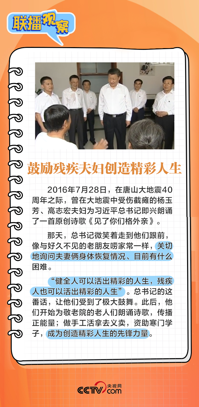 無論是在地方還是在中央工作,習近平都對殘疾人群體格外牽掛,給他們留下了很多溫暖的記憶。黨的十八大以來,以習近平同志為核心的黨中央對殘疾人事業格外關心、格外關注,殘疾人的獲得感、幸福感、安全感顯著增強。