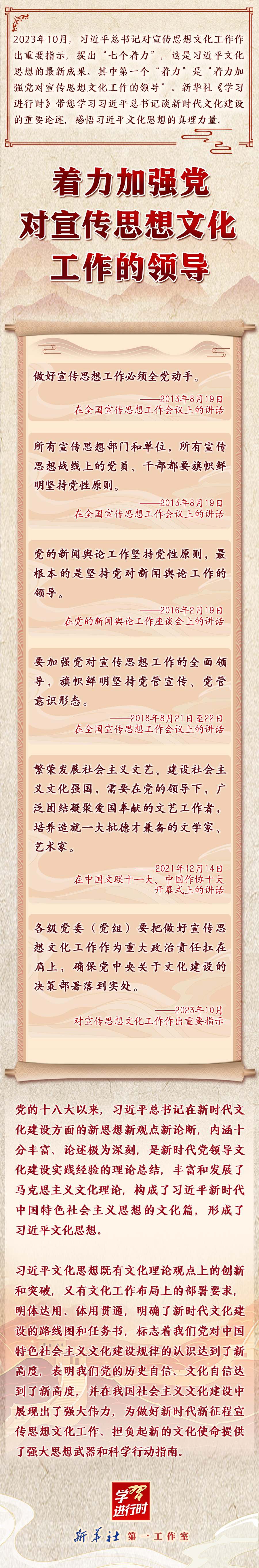 領悟習近平文化思想系列之一:著力加強黨對宣傳思想文化工作的領導
