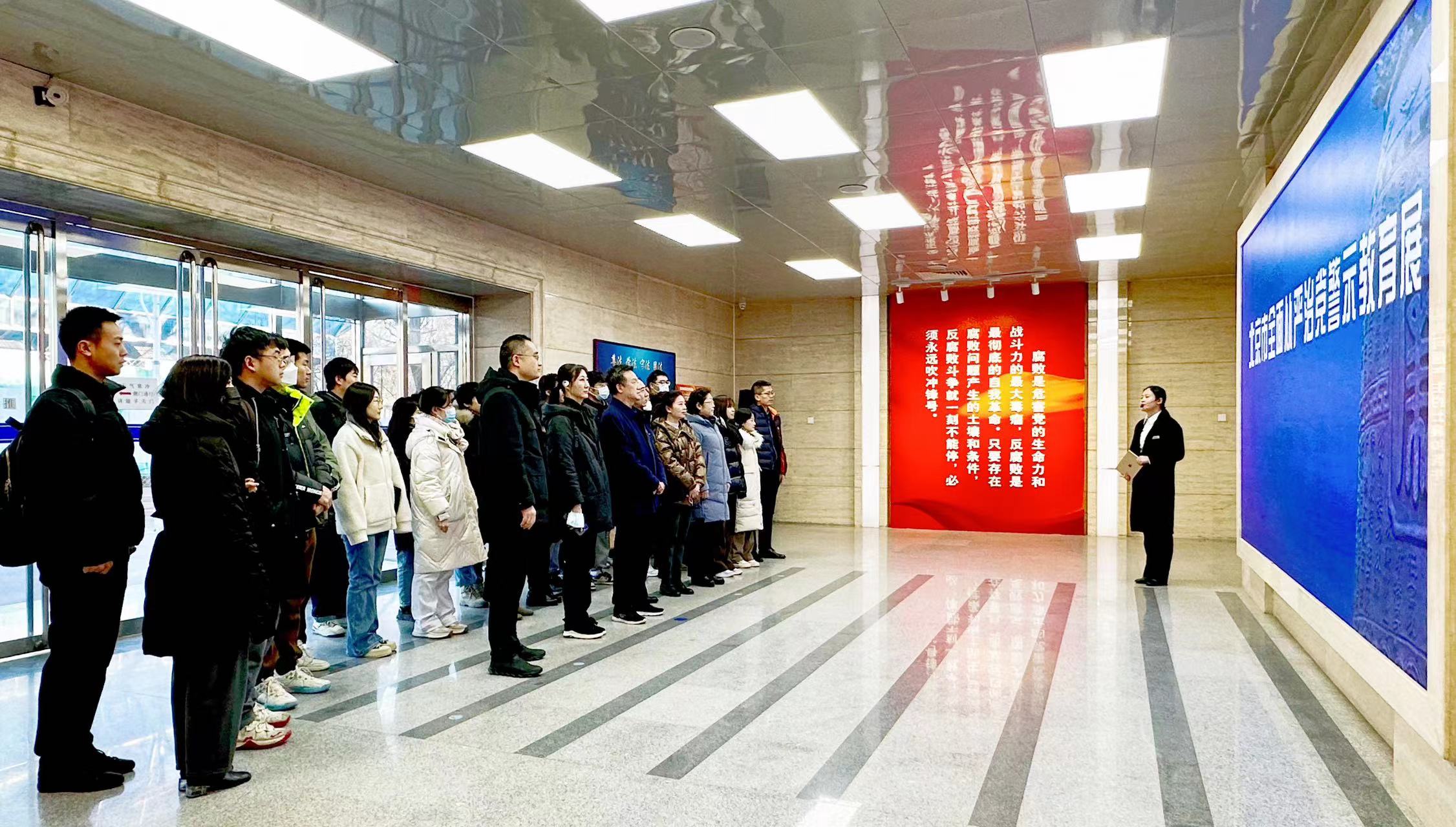警示教育展以習近平總書記關于全面從嚴治黨的一系列重要論述為主線,用大量典型案例,引導黨員干部知敬畏、存戒懼、守底線。大家依次參觀“挺紀在前、筑牢防線”“以案為鑒、知畏知止”“不忘初心、牢記使命”三個展廳,集中學習以習近平同志為核心的黨中央引領全面從嚴治黨的偉大實踐和豐碩成果,觀看“一把手”、青年干部、國企領域等重點人群、關鍵崗位的違法違紀典型案例,沉浸式“體驗”服刑人員的落馬場景、懺悔畫面、勞改生活等內容。強烈的感官沖擊、直抵心靈的觸動,讓黨員們大受震撼、深受教育,更加深刻地認識到黨風廉政建設和反腐敗斗爭的重大意義,進一步強化了推進全面從嚴治黨的責任感、使命感和緊迫感。最后,全體黨員干部面對黨旗,重溫入黨誓詞。