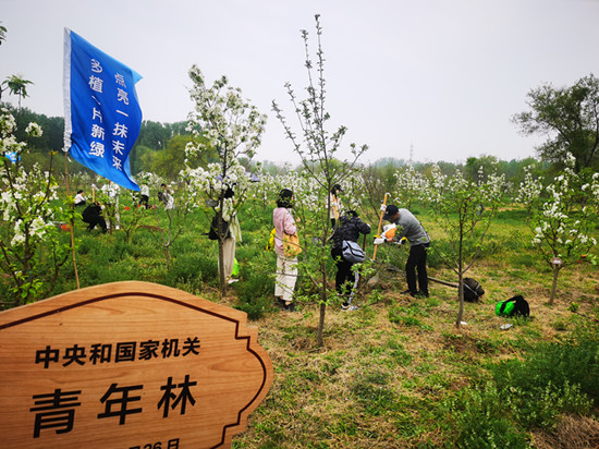 為深入學習貫徹習近平生態文明思想,認真落實習近平總書記關于全民植樹增綠、共同譜寫人與自然和諧共生的中國式現代化新篇章的重要講話精神,4月26日,中央和國家機關青年植樹交友活動在北京野鴨湖國家濕地公園舉行。來自中央和國家機關各部門的200余名青年參加。