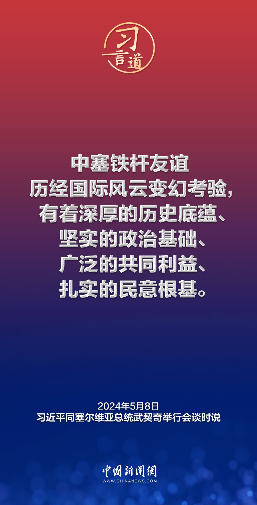 當地時間5月8日上午,國家主席習近平在貝爾格萊德塞爾維亞大廈同塞爾維亞總統武契奇舉行會談。習近平指出——